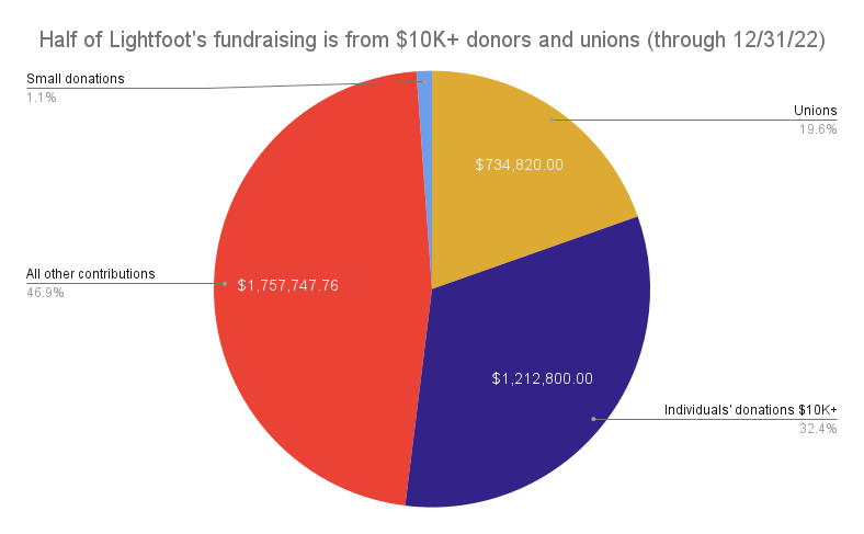 Megadonors ($10K+) and labor account for half of Lightfoot’s fundraising