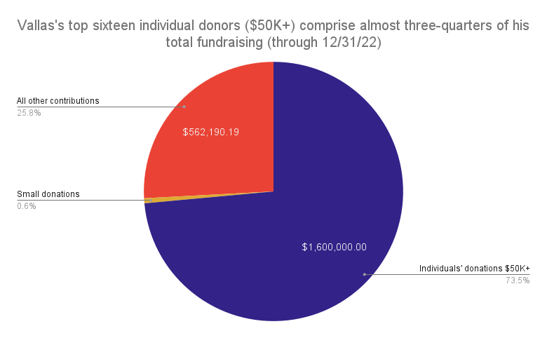 Vallas’s top sixteen individual donors gave him almost three-quarters of his campaign cash