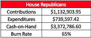 While House Republican candidates burned slightly more of their cash in the last quarter, they had significantly less in their campaign war chests compared to their Democratic opponents. House Democratic candidates had a total of $7.6 million on hand going into the second half of 2018. That’s more than double the GOP’s $3.4 million.