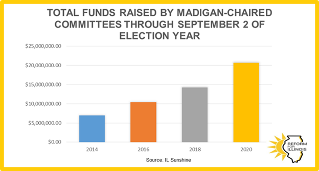 As Madigan’s fundraising continues to increase dramatically with each new election cycle, his financial influence over his caucus increases as well.