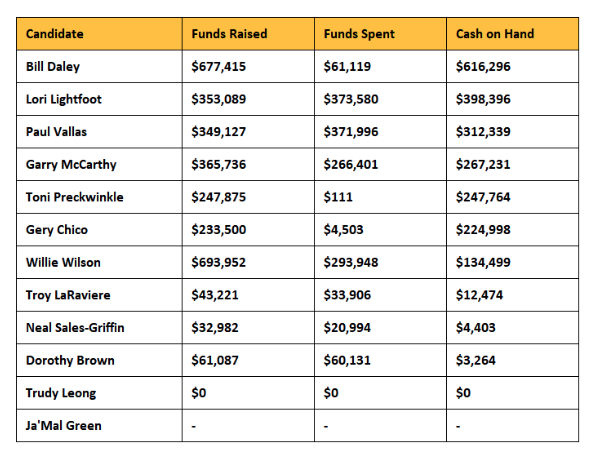 Mayor Rahm Emanuel’s early September announcement that he would not seek re-election sent shockwaves through Chicago politics and spurred new candidates to enter the contest. Shortly after the announcement, Bill Daley, the son and brother of two former Chicago mayors; Toni Preckwinkle, Cook County Board president; and Gery Chico, former Chicago Public Schools board president, all declared their candidacy. As the third largest city in the country, the Chicago mayoral race represents a campaign to lead a population larger than 15 states and preside over a city government with an $8.6 billion budget. The position has drawn campaign contributors from across the country vying to influence this important position. So far, more than $5 million has been raised by 12 declared candidates. Click here to read a full analysis of the fundraising and spending in the mayoral race. |