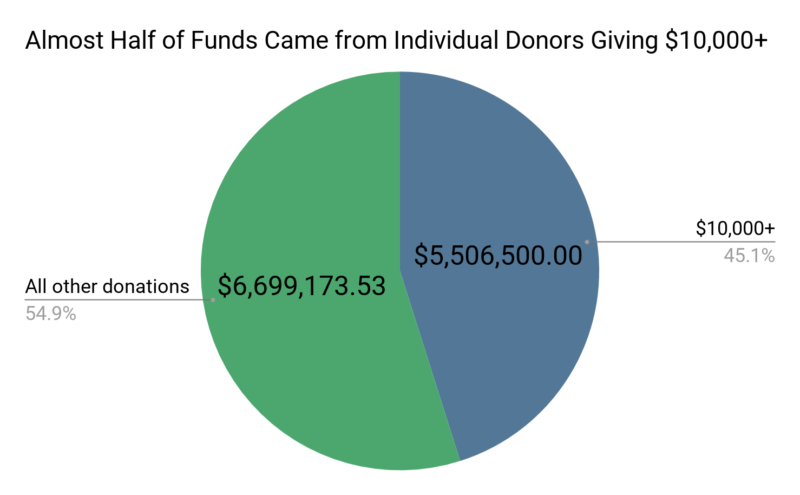 **This analysis may actually underplay the impact of big individual donors, since some such individuals may contribute via LLCs, trusts, or other entities that we excluded from our top donor count.