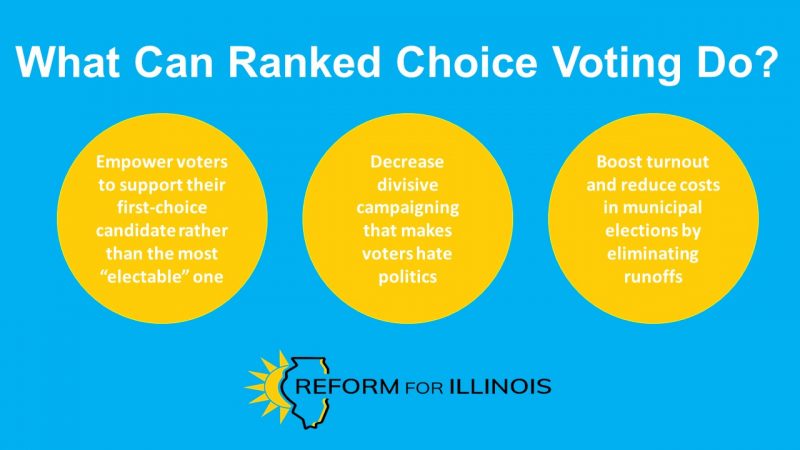 In 2022, Reform for Illinois spearheaded a successful effort to adopt-ranked-choice voting in Evanston. Eighty-two percent of voters approved the referendum. On to Chicago and other municipalities, state, and federal elections!